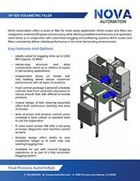 NOVA Automation offers a scale or filler for most every application. Our volumetric filler is designed to maximize fill speed and accuracy, while offering simplified maintenance and operation. Used alone, or in conjunction with automated bagging and palletizing systems, NOVA scales and fillers consistently deliver reliable performance in the most demanding environments.